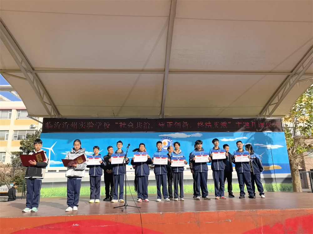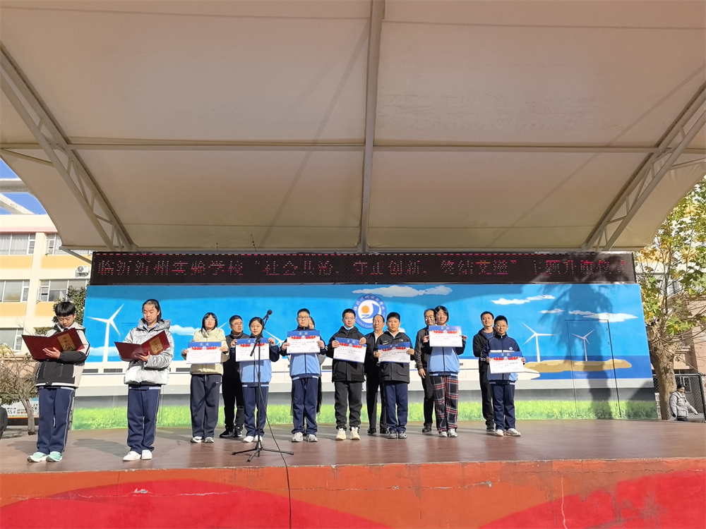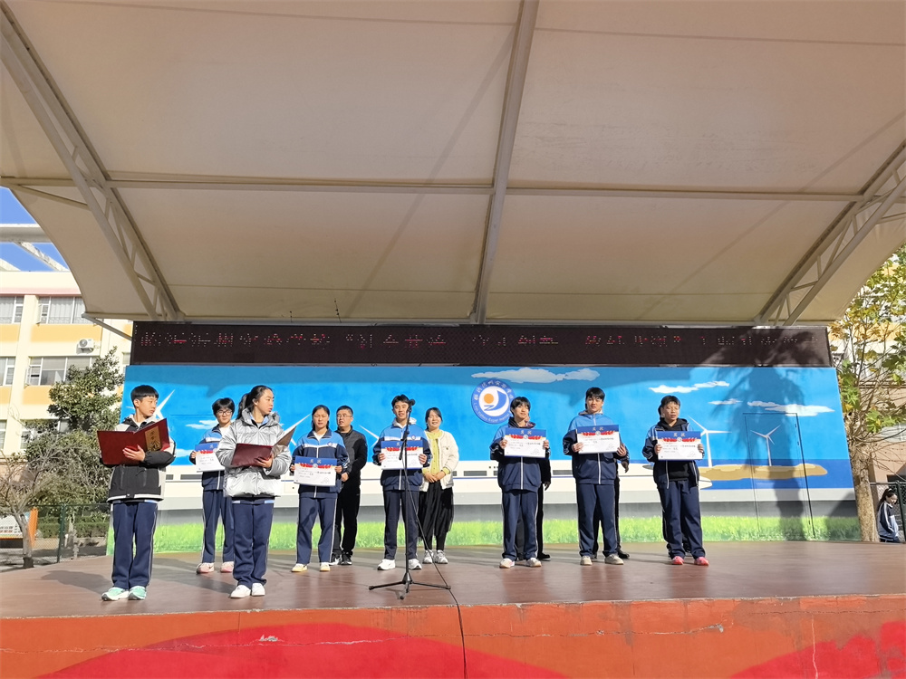 升旗结束后,学校韩克主任上台宣读《关于表彰七年级拔河比赛、八年级第九届校园篮球赛获奖班级的决定》。韩主任在表彰中肯定了各获奖班级在体育赛事中展现的拼搏精神与团队凝聚力,随后组织颁奖。当获奖班级代表依次上台领奖时,现场响起阵阵热烈掌声,既为体育健儿们喝彩,也让“团结协作、奋勇争先”的精神感染着每一位师生。
