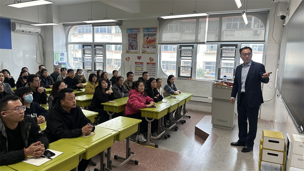随后,一年级主任苏德强做了《共育新起点 同心筑未来》的报告,围绕常规训练养习惯、特色课程提素养、家校配合促成长等方面介绍了一年级孩子入学后的成长,鼓励家长耐心陪伴、科学引导,告诉家长只要我们家校共育携手同行,我们的孩子一定可以顺利适应小学生活