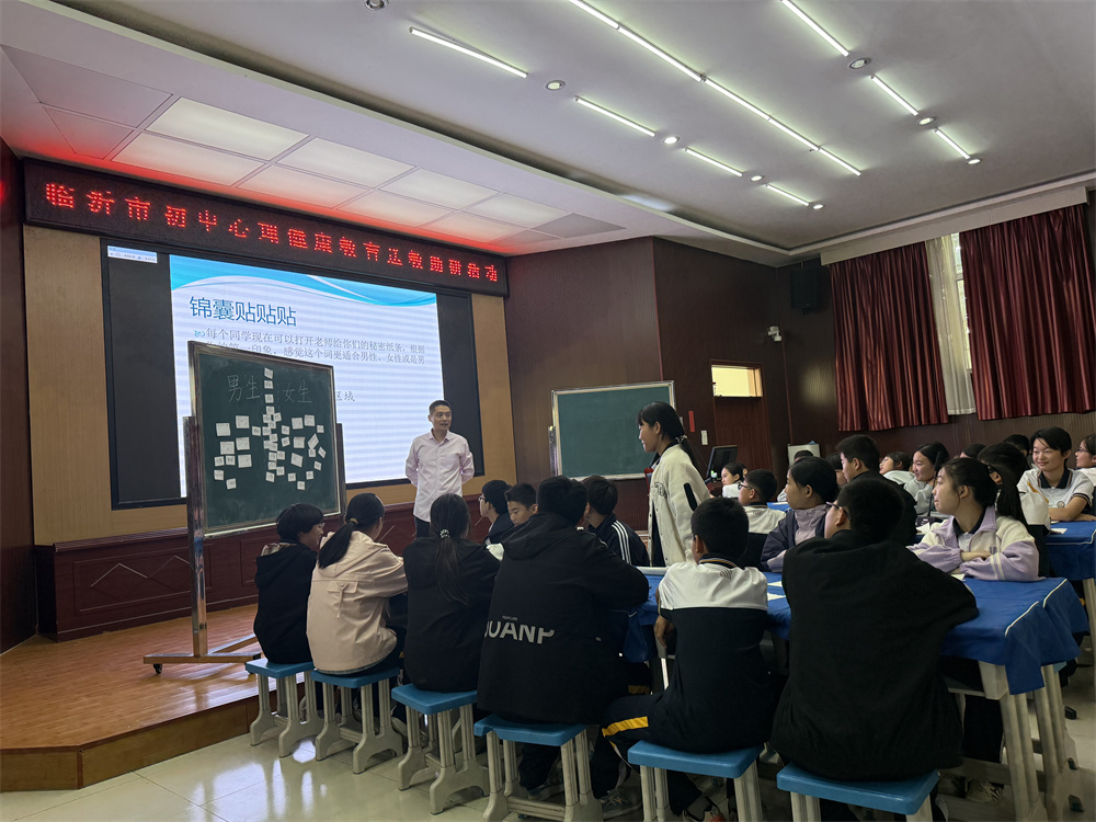 为进一步推进我市初中教育优质均衡发展,促进农村初中学校教育教学质量提升,增强学校心理健康教育教学工作的针对性和实效性,根据市教科院工作安排,2025年10月21日,我校初中专职心理健康教师贾兆丰赴平邑县东城赛博中学开展送教活动。临沂市心理教研员、兰山区心理教研员、市直及兰山区心理健康教育骨干教师代表、平邑县及蒙阴县心理教研员和初中心理健康教育骨干教师共同参加了此次教研活动。